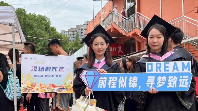 时光荏苒,流年不负,又是一年毕业季,学校为毕业生准备了特别的祝福。活动现场多位毕业生一起切下载满祝福的蛋糕,愿所有毕业生不负热爱,前程似锦!冠云食堂里更是准备了多道满含期望的精致自助菜品:“展翅高飞”“前程似锦”“节节高升”“蒸蒸日上”,饱含了学校对所有毕业生志存高远,鹏程万里的美好祝愿。